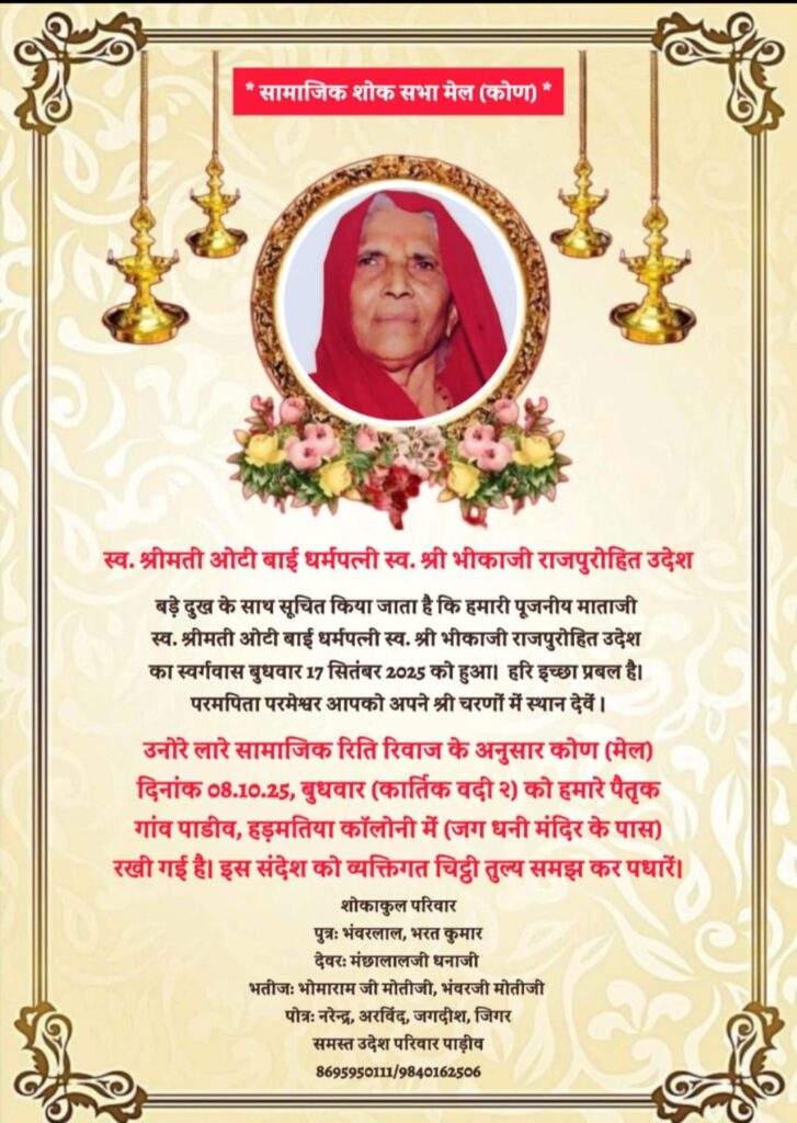 5. ऊड में समाज के कुल 400 घर है जिसमें रायगुर गौत्र के … जिनकी कुलदेवी आशापुरा माताजी है