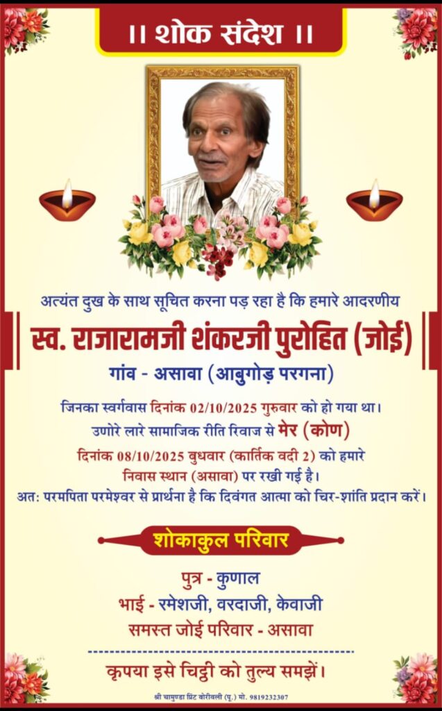 12. जोड़वाडा में समाज के कुल 400 घर है जिसमें रायगुर गौत्र के … जिनकी कुलदेवी आशापुरा माताजी है