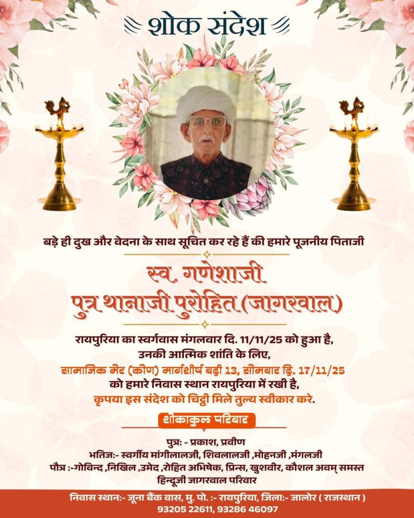 3. जावाल में समाज के कुल 400 घर है जिसमें रायगुर गौत्र के … जिनकी कुलदेवी आशापुरा माताजी है