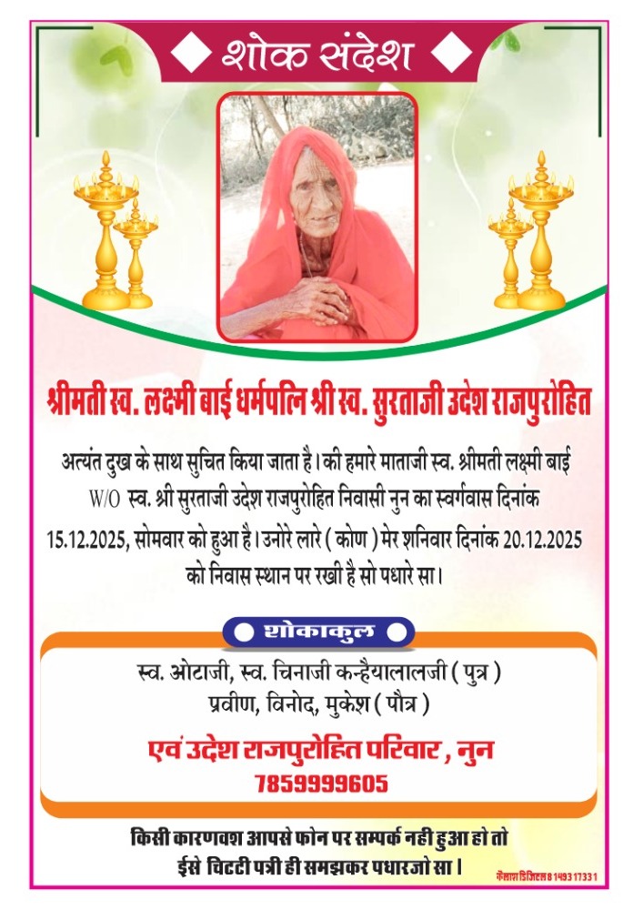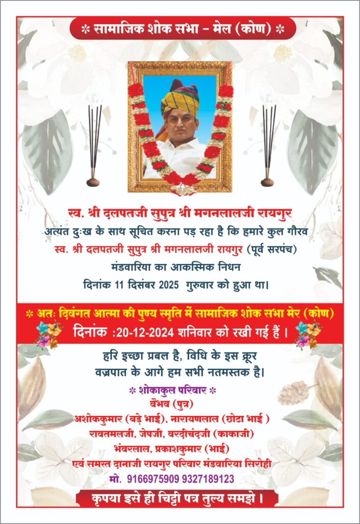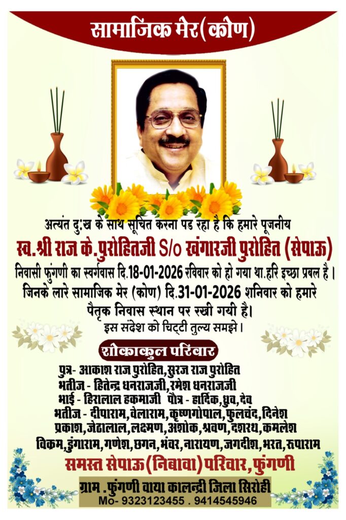एवं जनरल सभा आमंत्रण कालंद्री। नवपरगना राजपुरोहित...