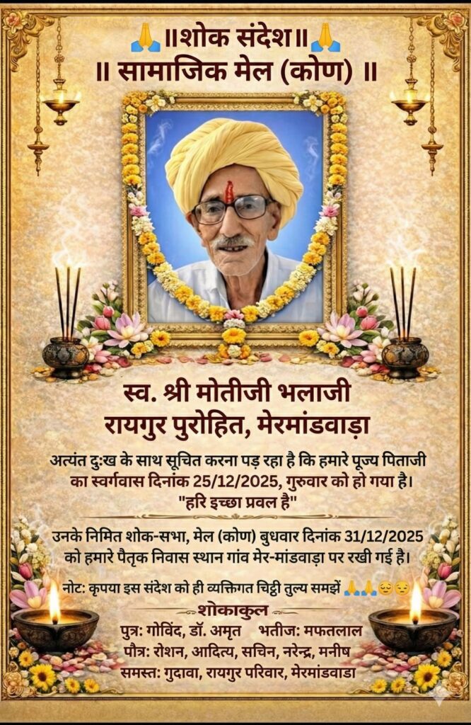4. भामरा में समाज के कुल 400 घर है जिसमें रायगुर गौत्र के … जिनकी कुलदेवी आशापुरा माताजी है