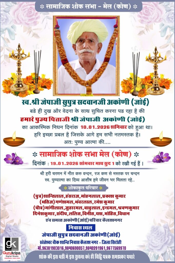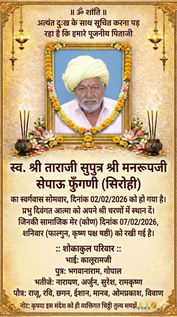 4. सिरोड़ी में समाज के कुल 400 घर है जिसमें रायगुर गौत्र के … जिनकी कुलदेवी आशापुरा माताजी है